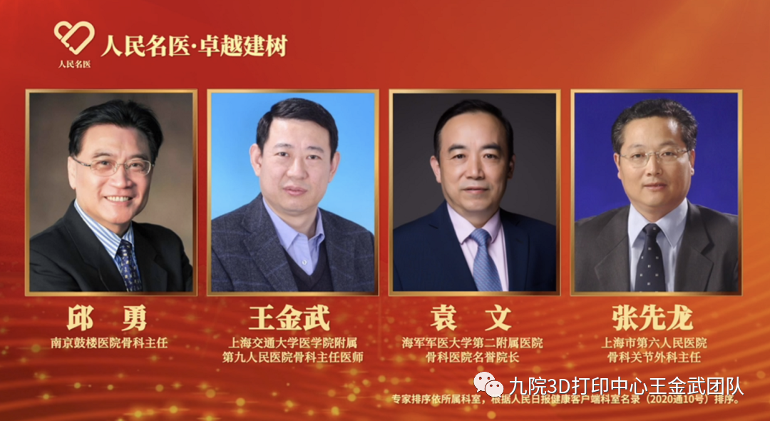 戴尅戎院士入选“第五届人民名医·特别致敬”,骨科王金武教授入选“第五届人民名医·卓越建树”,进一步体现联盟学科建设水平、医生群体的医德医技,获得主流媒体和业内的权威认可。