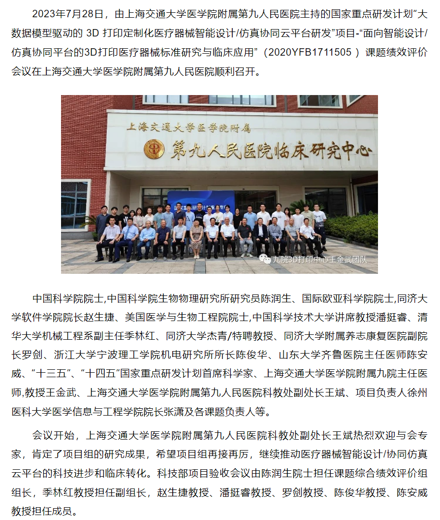新闻媒体 > 学术前沿 > 国家重点研发计划项目—“面向智能设计/仿真协同平台的3D打印医疗器械标准研究与临
