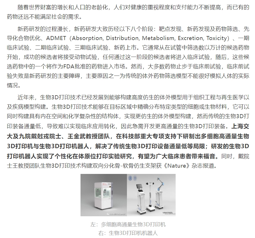 高通量生物3D打印装备联合药物筛选反应器助力药物研发