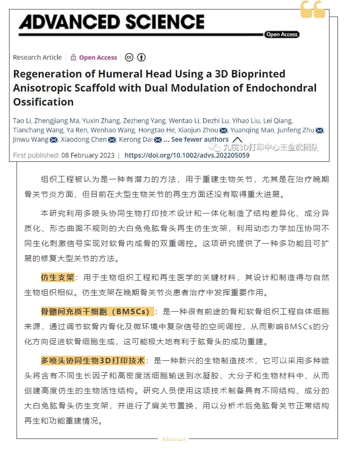 新闻媒体 > 学术前沿 > 文献分享 | 生物3D打印仿生支架通过双向调控软骨内骨化促进肩关节再生